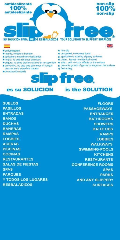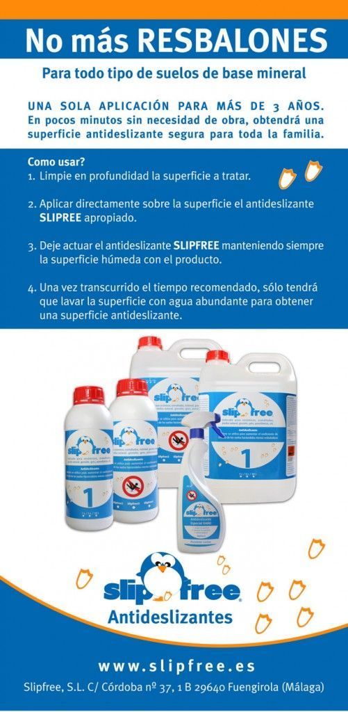 Factores importantes para obtener suelos antideslizantes: El mantenimiento de sus suelos es un factor extremadamente importante en la determinación de la resistencia al deslizamiento. Un suelo mojado por lo general crea el riesgo de resbalar. En áreas tales como restaurantes y zonas de servicio de alimentos. En las zonas de entrada del suelo adyacente a la calle, tales como tiendas o cualquier local comercial, se deben usar alfombras. Además de eliminar el agua de la suela de los zapatos, estas alfombras también eliminan la suciedad o la arena que puede dañar severamente la superficie del suelo. esterillas adicionales deben ser colocadas cerca de la entrada en condiciones de lluvia o nieve. El mantenimiento de la limpieza de la superficie regular también se traducirá en la eliminación de la suciedad y el polvo sobre todo, un creador común de suelos resbaladizos. El Mantenimiento adecuado del suelo también requiere que los productos químicos de mantenimiento se vuelvan a aplicar en un «como sea necesario». Asegúrese de que los productos químicos de limpieza son compatibles con los selladores. Además, ciertas ceras pueden crear un riesgo de resbalones.